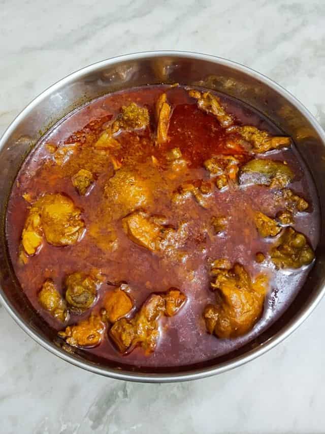 Add salt and spice powders. Mix thoroughly. Cook the chicken for 15 to 20 minutes.
