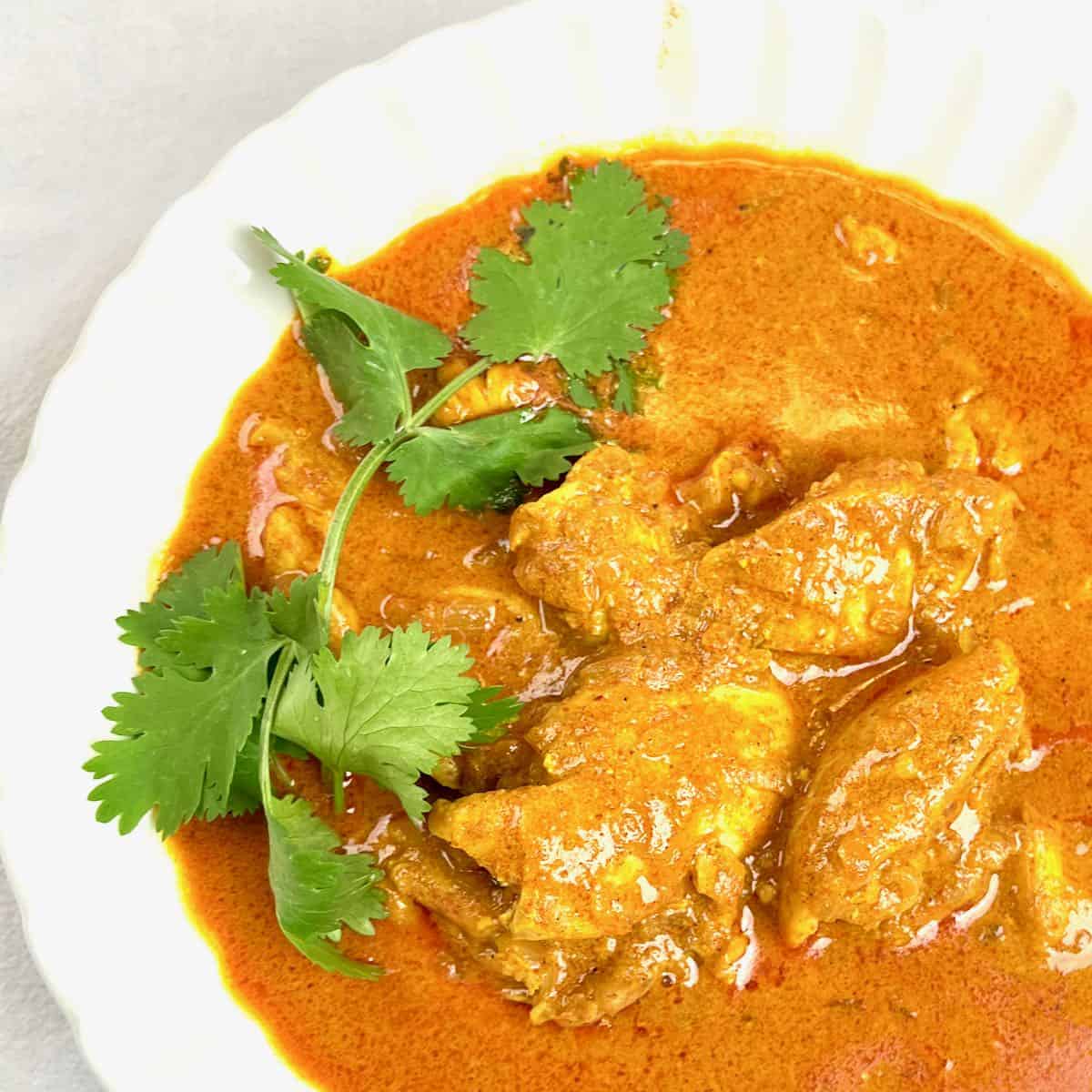 Dahi Chicken, also known as curd chicken, is a creamy curry made with yoghurt and spices. This flavourful dish pairs perfectly with roti, jeera rice, or naan.