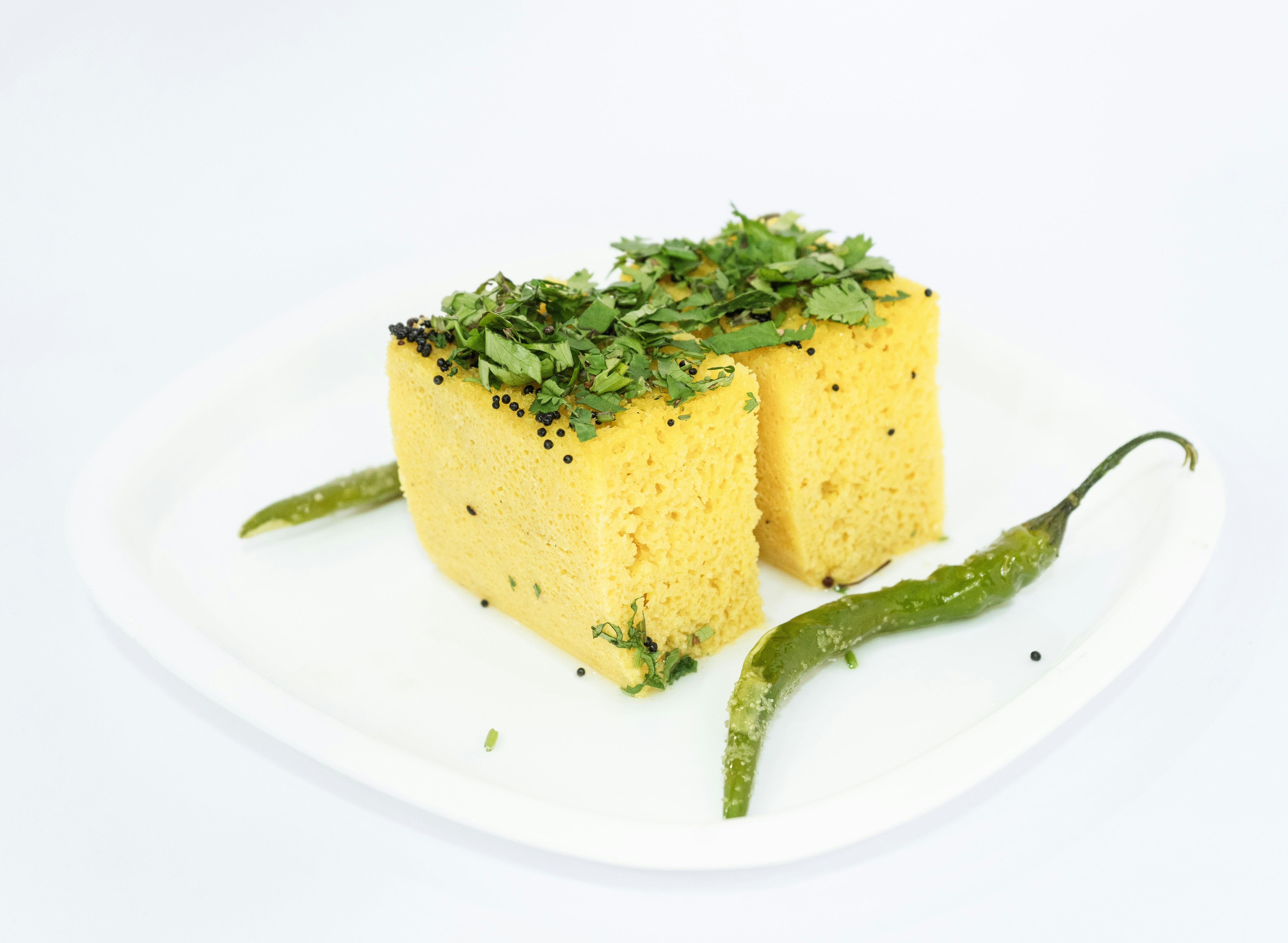 For The Batter: 1.5 cups besan 3/4 cup water 1/2 tsp salt 1/4 tsp sugar 1/4 tsp turmeric powder 1 tsp baking soda 1 tsp oil For The Tadka: 2 tsp oil 1/2 tbsp mustard seeds 3-4 green chillies 12-14 curry leaves 1 cup water 1/2 tsp salt 4-5 tsp sugar Juice of 1/2 lemon