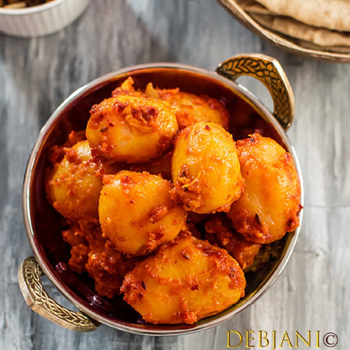 Kashmiri dum aloo is a creamy, spiced potato curry from the Kashmir valley. The yoghurt-based gravy infused with fennel and ginger creates a rich, aromatic dish perfect for festive meals or weekend indulgence.