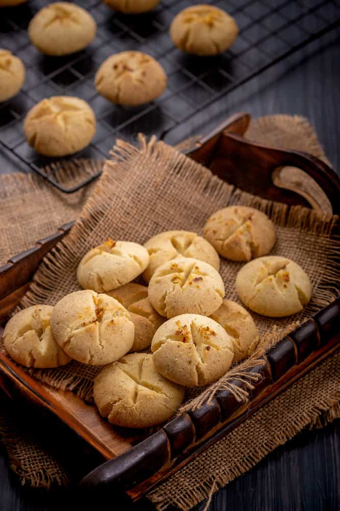 Remove tray from oven. Transfer cookies to a cooling rack. Once at room temperature, serve with tea or coffee. Store nankhatai in airtight containers.