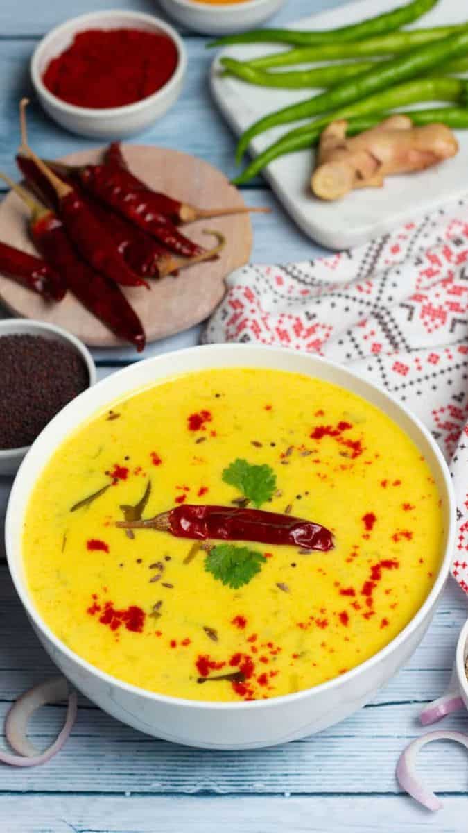 This Rajasthani dish is said to be greatly influenced by the dry and barren landscape of the region, and also the scarcity of water. As water is scarce in this region, kadhi is mostly milk, yoghurt, or ghee-based, which gives the food a rich texture that is typical of Rajasthani cuisine. A bowl of kadhi with steaming rice is a perfect recipe for an easy and simple winter bowl!