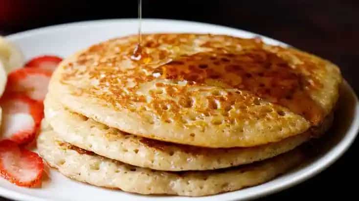 4 egg whites 2 tbsp oats flour or whole wheat flour 1 tbsp honey or maple syrup ½ tsp vanilla essence 1 tsp butter or ghee A pinch of cinnamon powder (optional) Fresh fruits for topping (banana, berries, or apple slices)