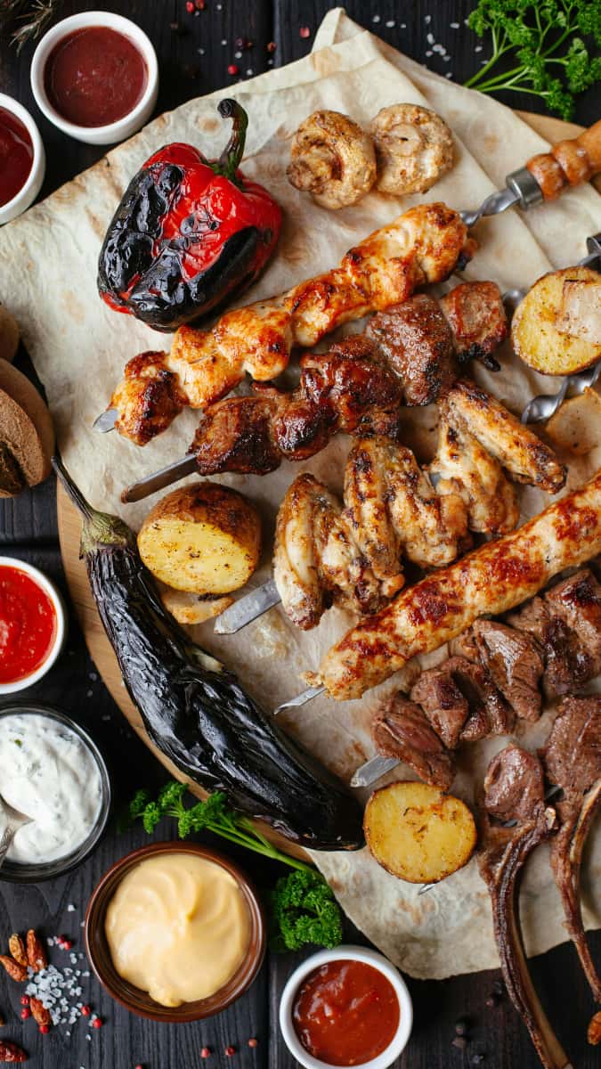 You can make grilled veg seekh kebab with finely chopped vegetables like carrots, potatoes, peas, etc and add to your starters spread.