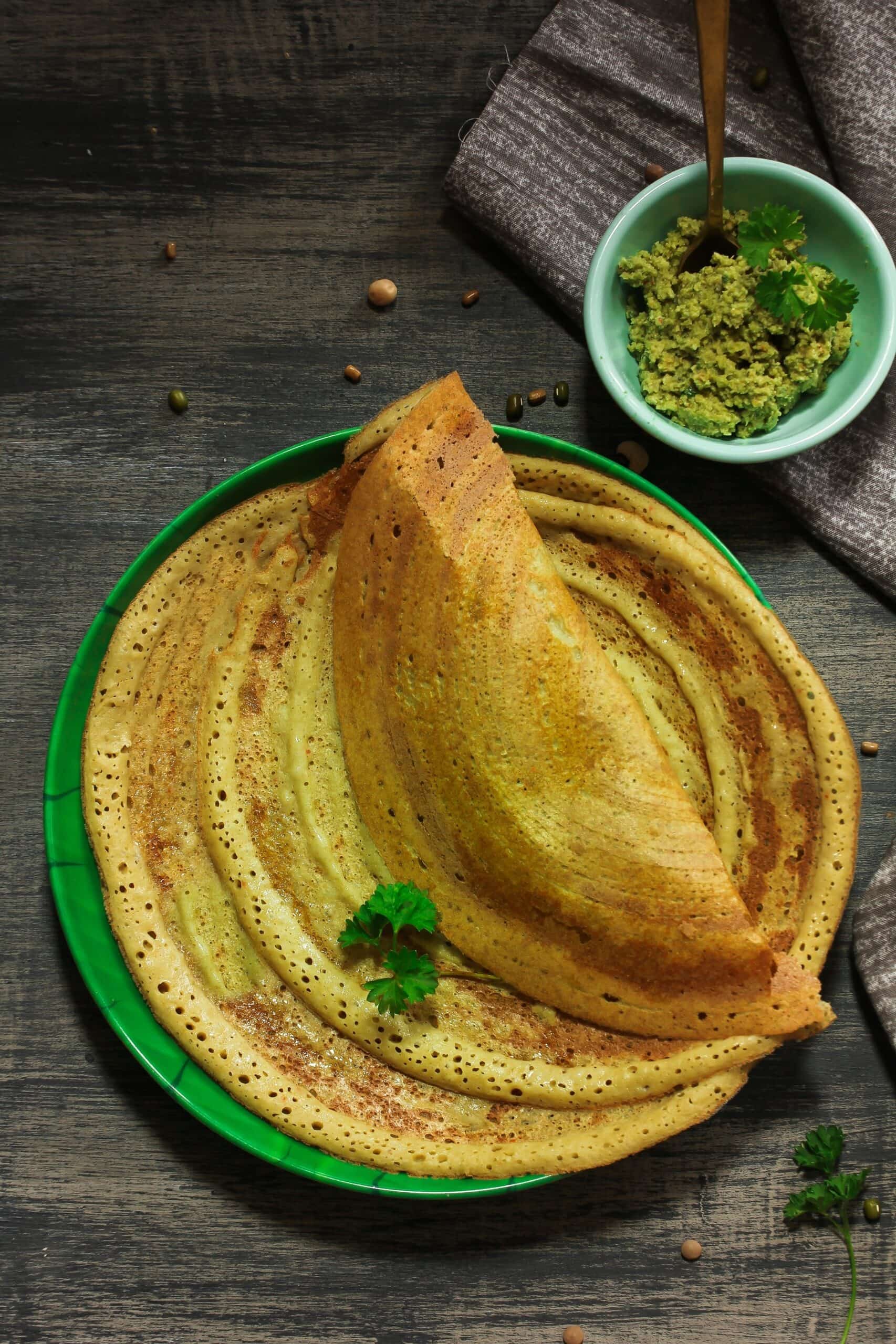 The chilla tastes great when served warm with mint sauce or curd.