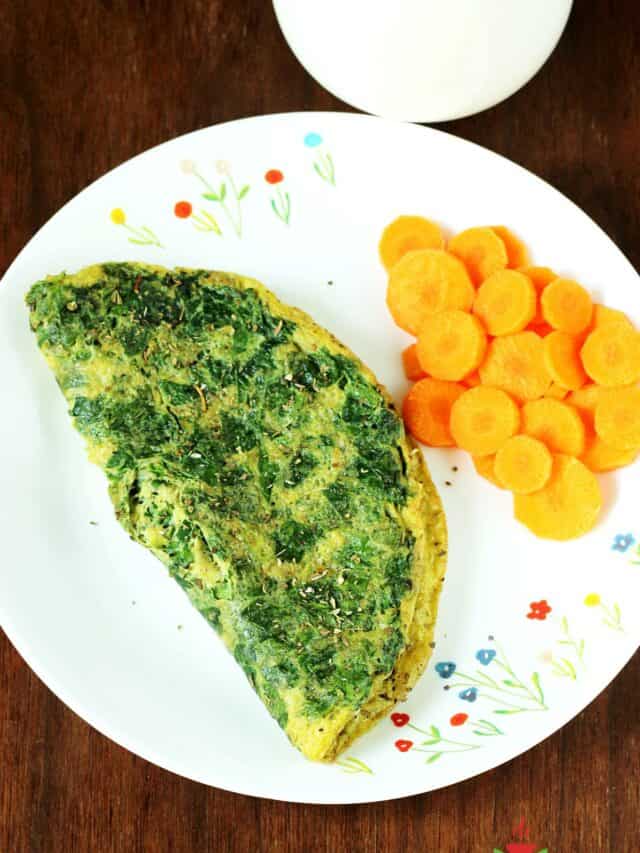 A green omelette is a fluffy, protein-packed breakfast dish made with eggs and a blend of spinach, coriander, and green chillies. It is nourishing, quick to prepare, and a good way to add greens to your day.
