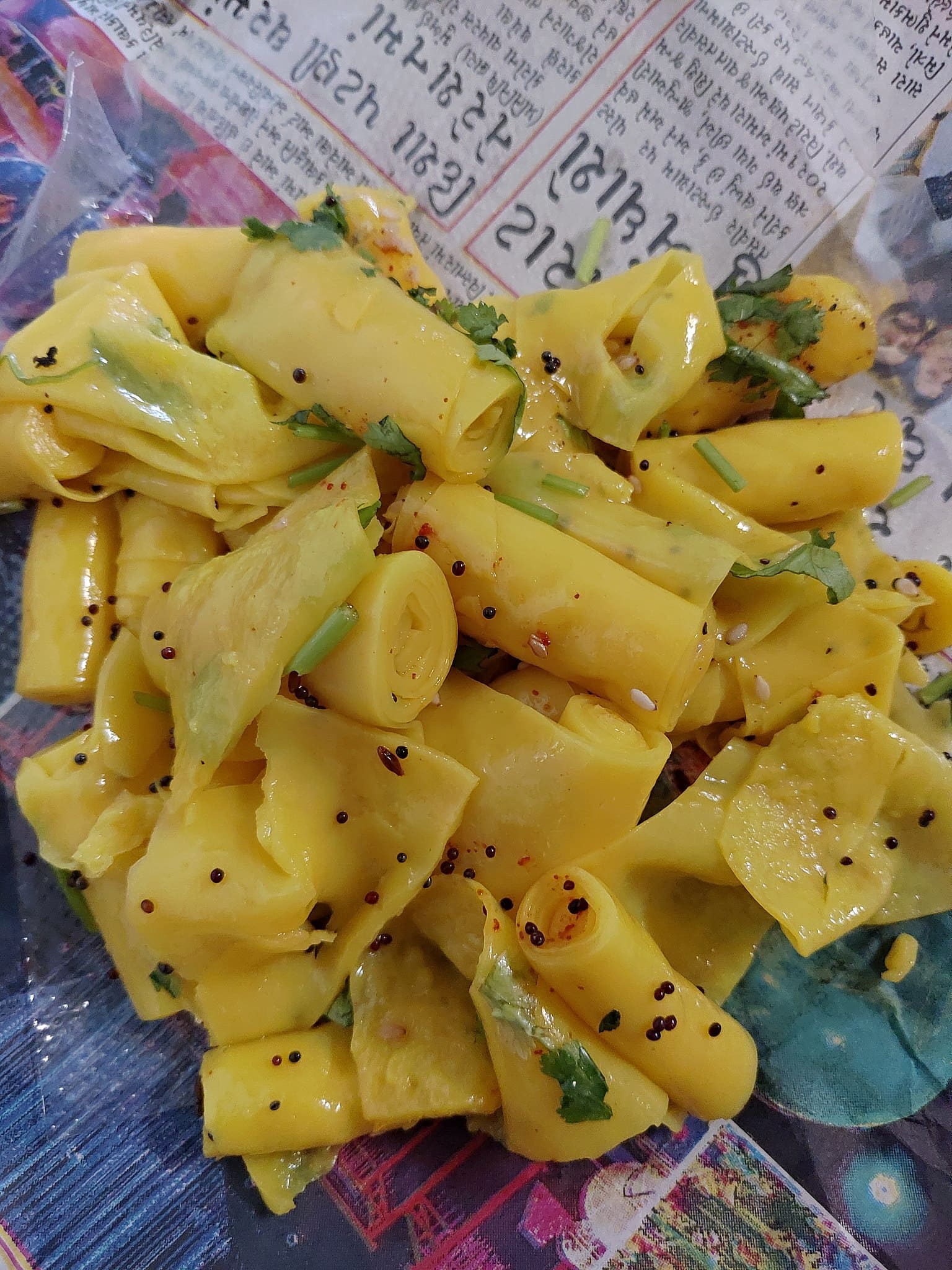What can be best described as thin rolled sheets of gram flour, the khandvi is a supple textured delicacy that has a distinct tang to its yellow form. Often relished as part of a larger meal, it also makes for the perfect snack to enjoy alongside a cup of tea.