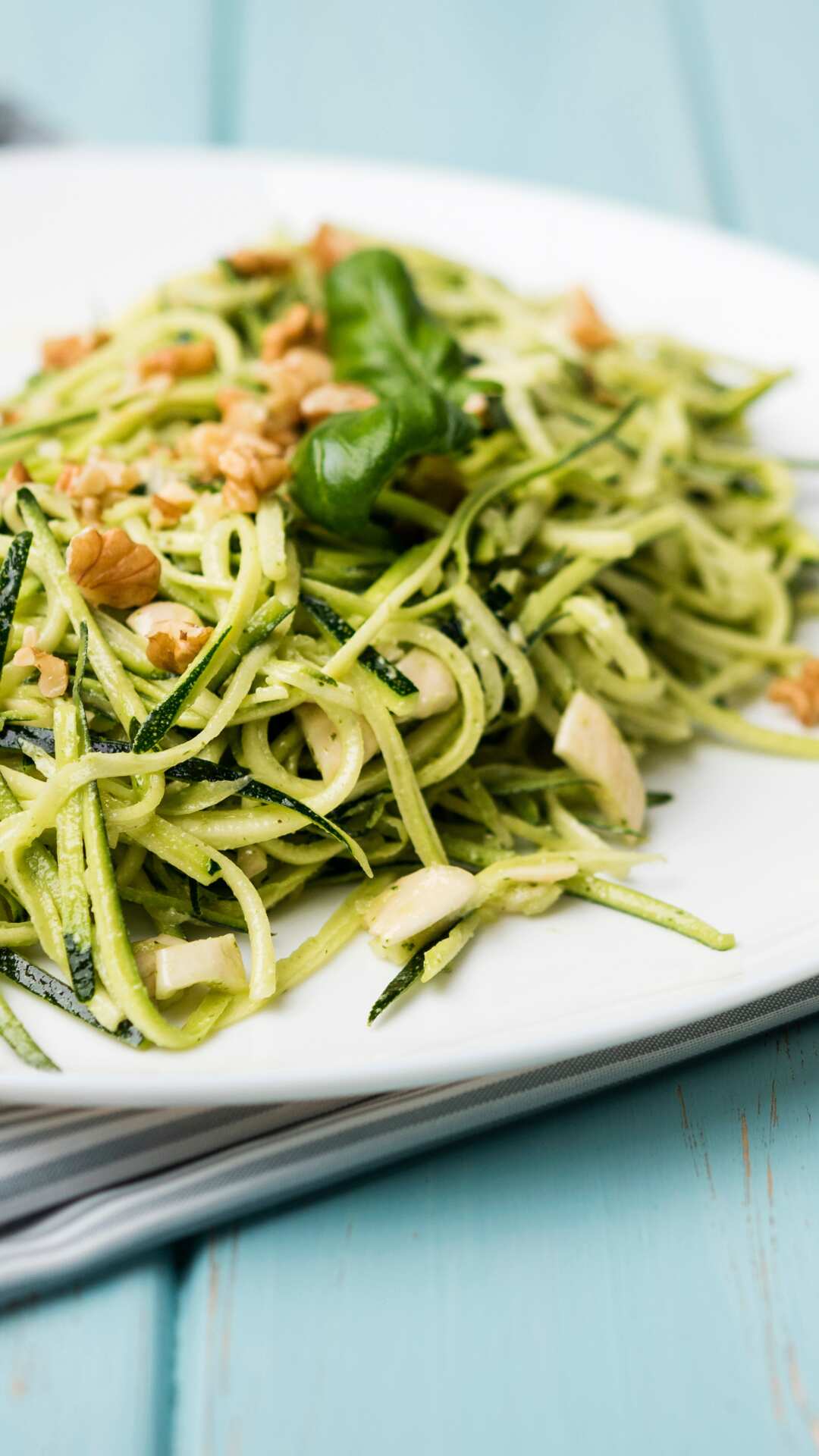 Cucumber noodles are made by thinly slicing cucumber into noodle-like strips. They are perfect to enjoy a low-carb, healthy or gluten-free craving for noodles. The crunchy texture of cucumber is paired with a variety of sauces, making it a versatile side for salads.