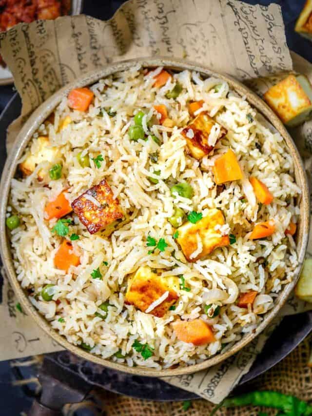 Paneer biryani is a vegetarian’s go-to one-pot dish. Made with layers of rice, marinated paneer, chopped vegetables, and a blend of spices, it is a must-try if you’re looking for a high-protein lunch or dinner.