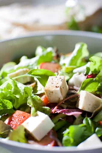 Mix in paneer, soy sauce, salt, and pepper. Serve over quinoa or brown rice and garnish with spring onions.