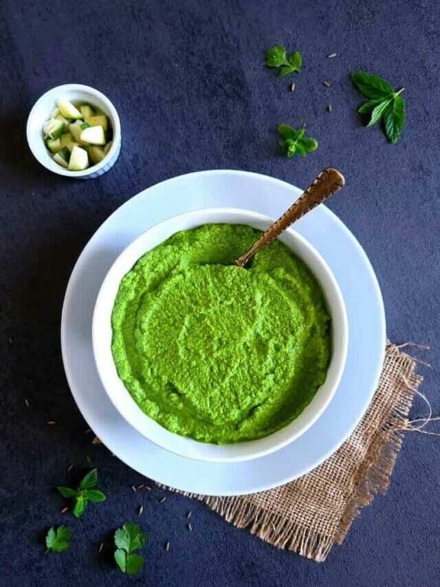 1 कप धनिया पत्तियां 1/2 कप पुदीना पत्तियां 3 हरी मिर्च 1 इंच अदरक टुकड़ा 1 टी स्पून जीरा 1/2 नींबू रस नमक स्वादानुसार 1/4 कप पानी