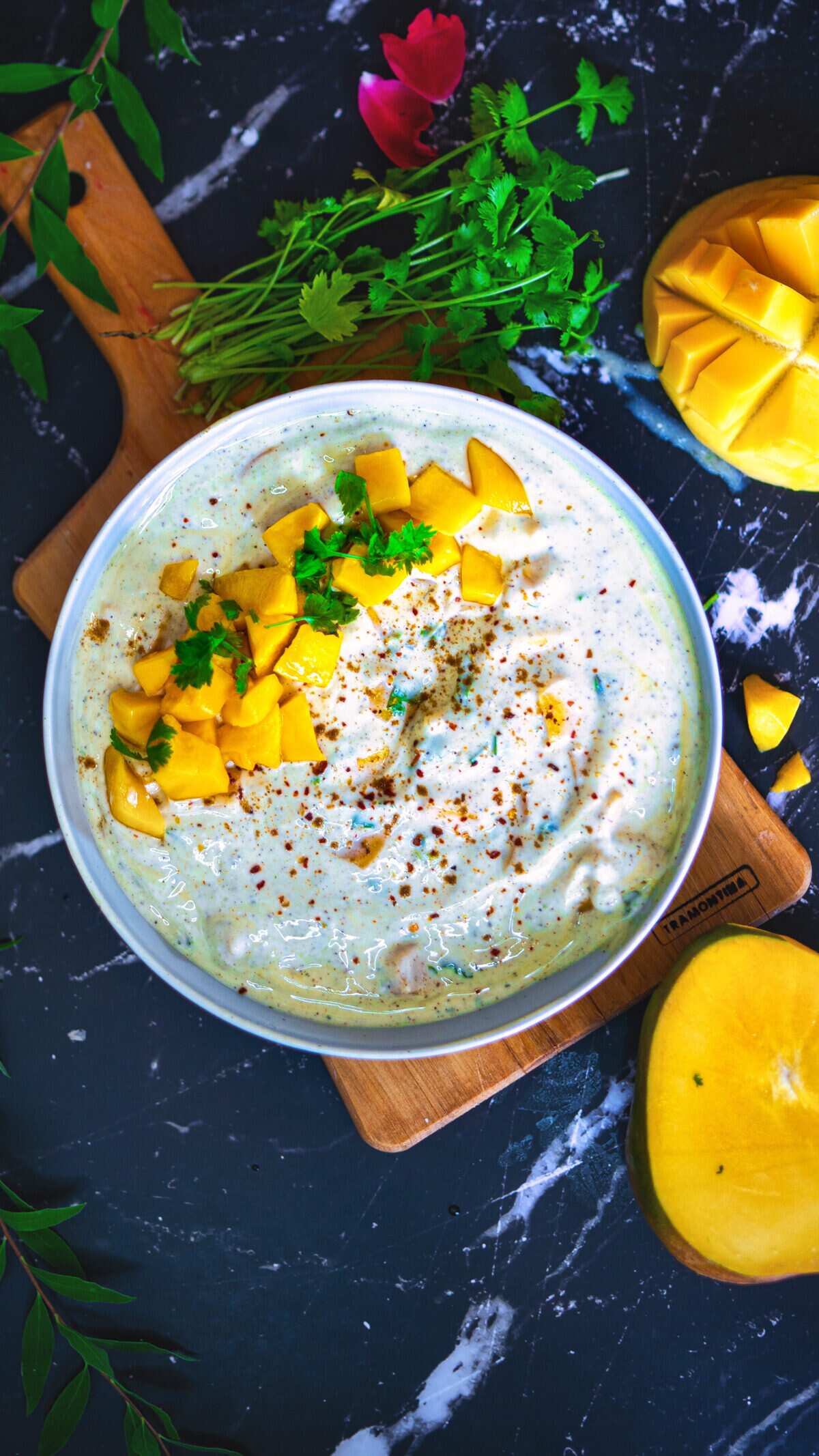 अब आपका स्वादिष्ट आम का रायता बनकर तैयार है। इसे लंच और डिनर में ठंडा ठंडा सर्व करें।