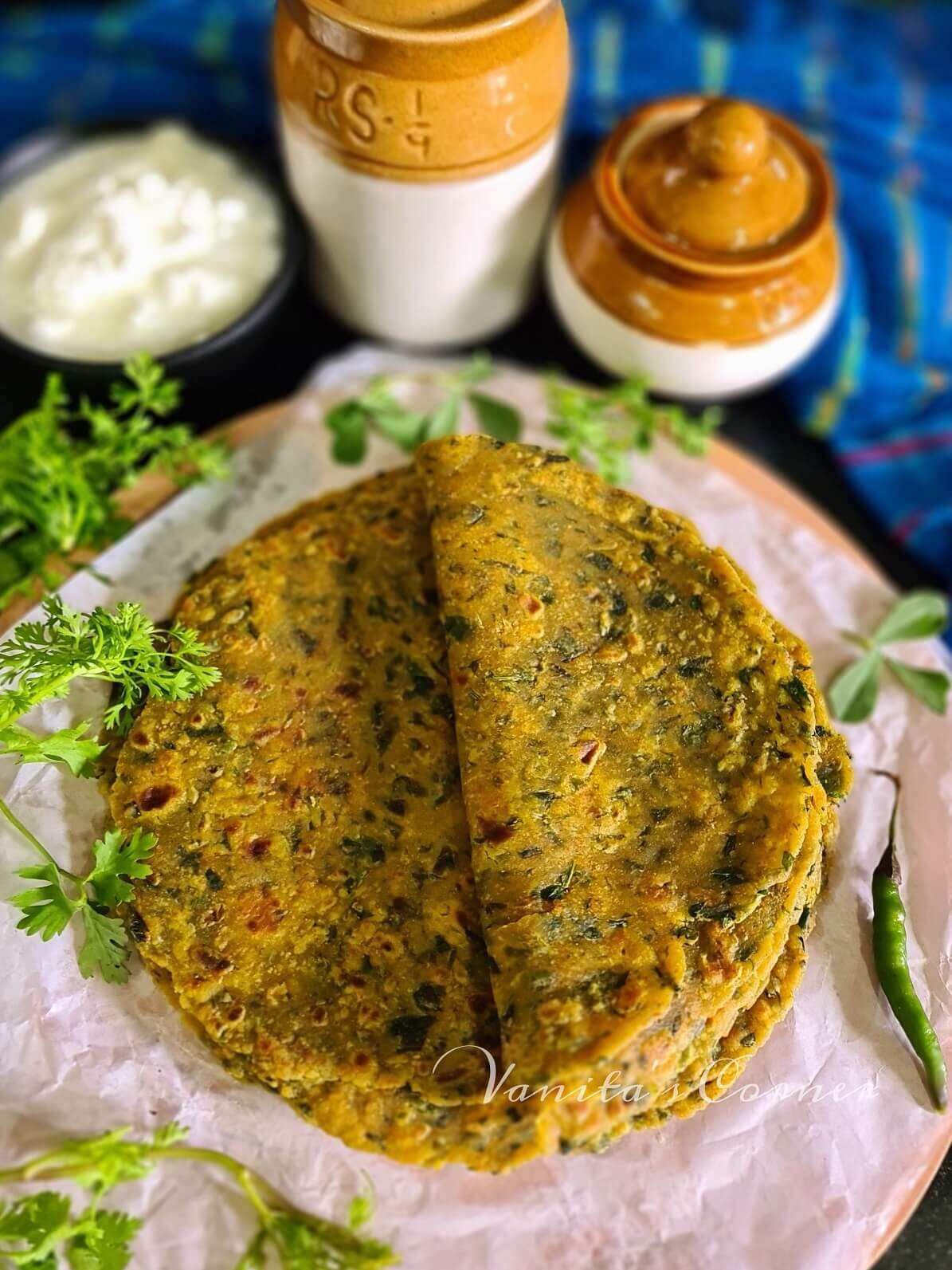 1 कप मेथी के पत्ते 100 ग्राम पनीर 2 कप आटा 1 टी स्पून जीरा पाउडर 1 टी स्पून हरी मिर्च (कटी हुई) 1/2 टी स्पून हल्दी पाउडर स्वादानुसार नमक 2 टेबल स्पून तेल