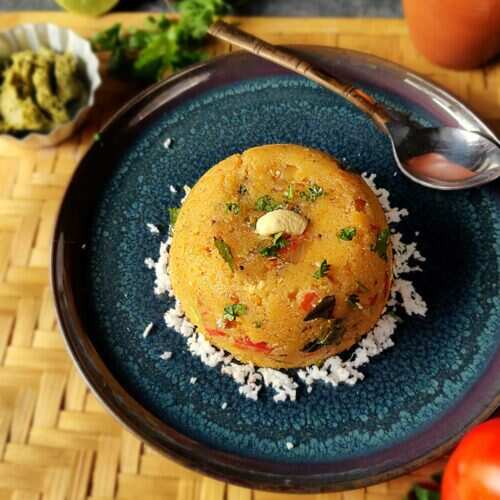 सूजी 3 कप टमाटर 2 प्याज 1 चना दाल 1 टेबल स्पून उड़द दाल 1 टेबल स्पून मिर्च पाउडर ½ टी स्पून राई ½ टेबल स्पून हरा धनिया 1 टेबल स्पून मूंगफली ⅓ कप नमक स्वादानुसार तेल 1 टेबल स्पून