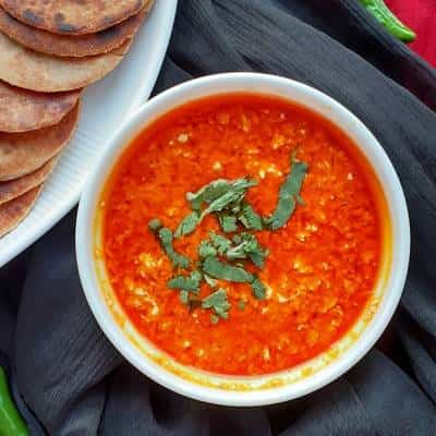 सबसे पहले लहसुन की कलियां को कूट लें। फिर इसमें लाल मिर्च पाउडर डालकर मिला लें।