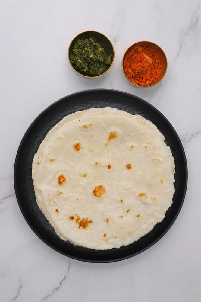 अब मीडियम आंच गैस पर एक तवा गर्म करें। तवा अच्छे से गर्म हो जाए तो उस पर धीरे से रोटी डालकर दोनों तरफ से अच्छी तरह से सेंक लें। ध्यान रहे रोटी को जल्दी में पलटेंगे तो यह टूट सकती है।
