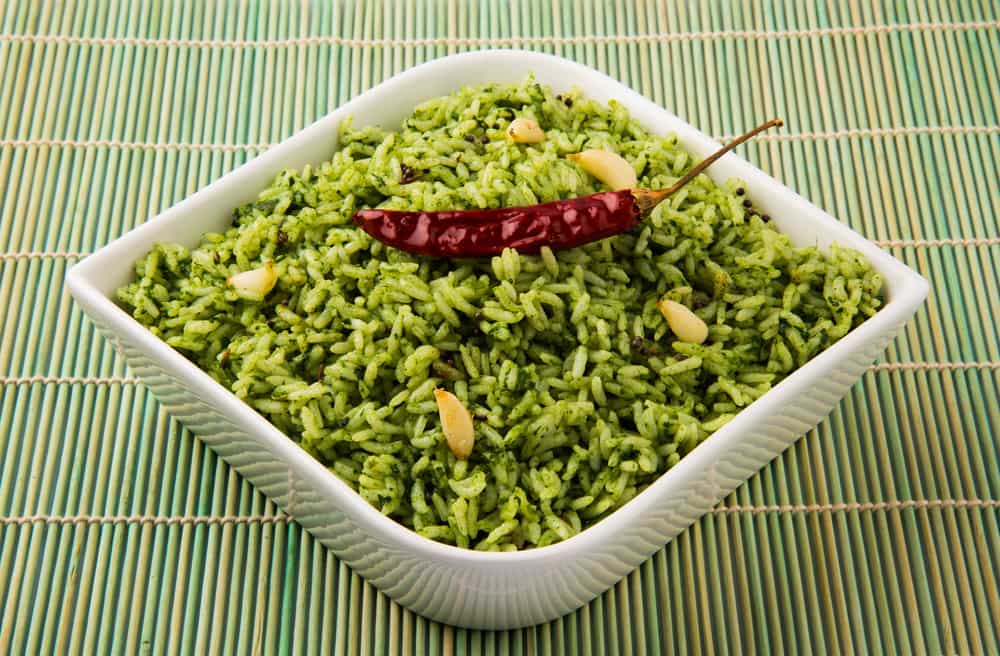 अब कटा हुआ टमाटर और मसाले डालकर टमाटर को नरम होने तक पकने दें। फिर इसमें पालक की प्यूरी डालें और अच्छे से मिला लें। तैयार पालक की मिश्रण में उबाले हुए चावलों को डालें और ढककर पकने दें। अंत में नींबू का रस डालें और गर्मागर्म पालक राइस सर्व करें।