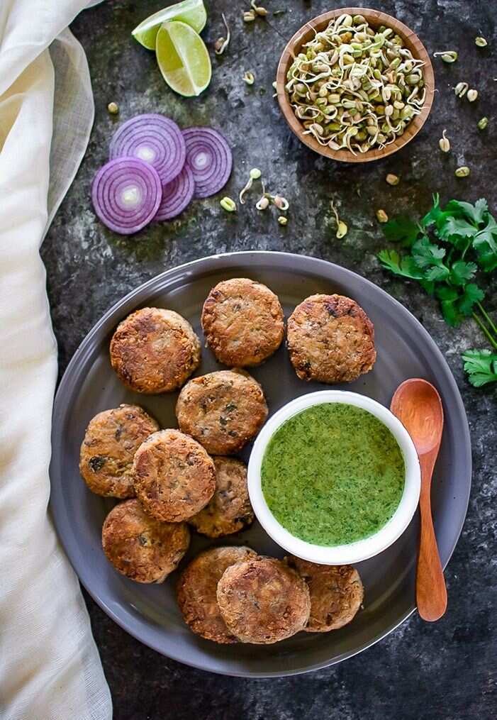 हरा मूंग 1 कप (भीगा हुआ) पोहा 1 कप प्याज 1 (बारीक कटा) हरी मिर्च 2 (बारीक कटी) अदरक 1 इंच टुकड़ा धनिया पाउडर ½ कप बेसन 2 टेबल स्पून जीरा पाउडर 1 टी स्पून धनिया पाउडर 1 टी स्पून लाल मिर्च पाउडर 1 टी स्पून नमक स्वादानुसार तेल 3 टेबल स्पून