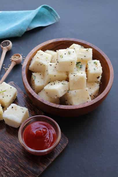 अंत में एक छोटे पैन में तेल गर्म करें, उसमें तिल डालें और तड़कने दें। फिर तड़के को ढोकला के ऊपर डालें, हरा धनिया से सजाएं और सर्व करें।