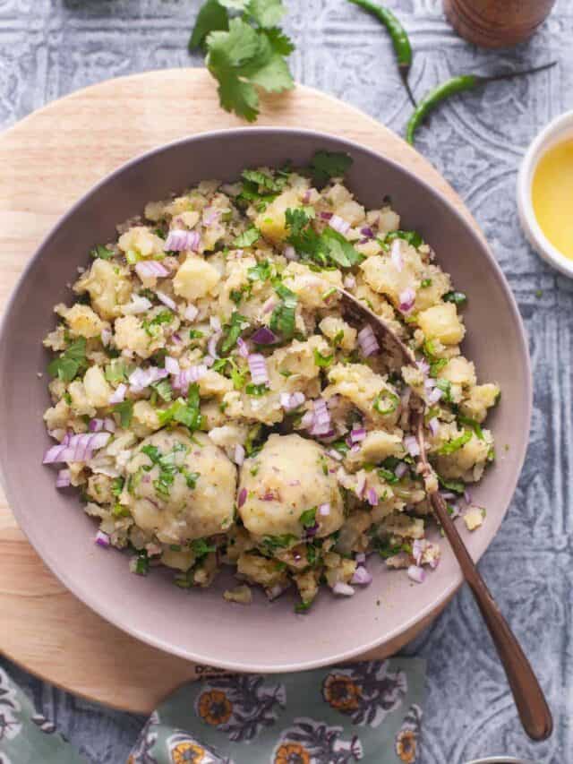 3 आलू 2 टमाटर 1 प्याज 1/2 कप हरा धनिया 1 टी स्पून लाल मिर्च पाउडर 1 टी स्पून जीरा पाउडर 1 टी स्पून धनिया पाउडर