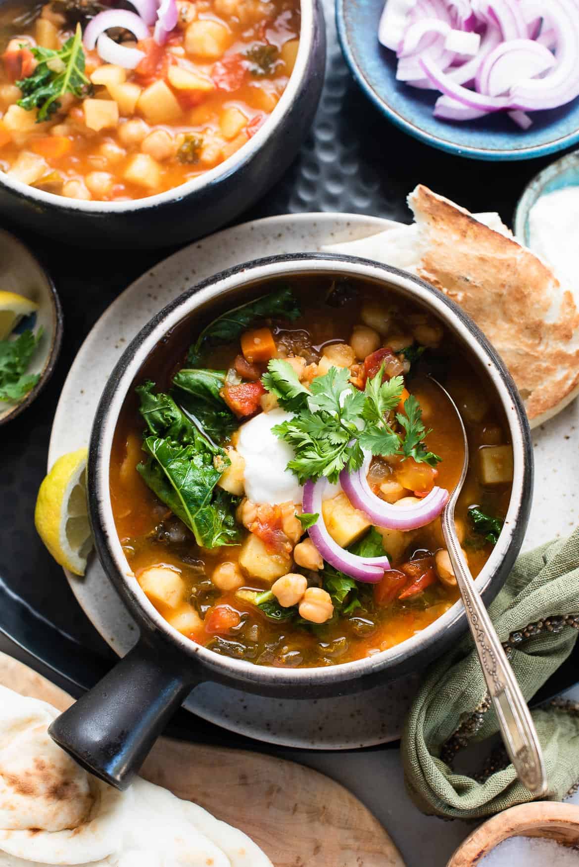 अब उबले हुए चने डालें और पानी डालकर उबालने के लिए छोड़ दें, सूप तैयार हो जाने के बाद, उसमें गरम मसाला डालकर अच्छी तरह से मिला लें। सूप को हरे धनिये से सजाकर गरमागरम परोसें।
