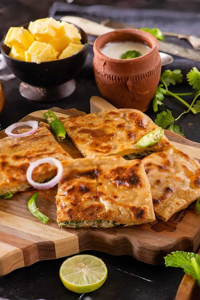 इसके बाद गूंथें हुए आटे की लोई बनाकर इसे अपने मनचाहा आकार में बेल लें। अब मीडियम आंच गैस पर एक तवा गर्म करें। तवा अच्छे से गर्म हो जाए तो उस पर पराठा डालकर सेंके।