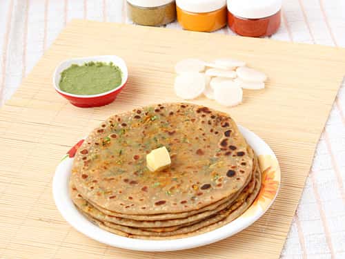 अंत में तवा गरम करें और उस पर थोड़ा सा घी या तेल लगाकर पराठा सेकें। गर्मा-गर्म मूली पराठा तैयार है, इसे चटनी के साथ सर्व करें।