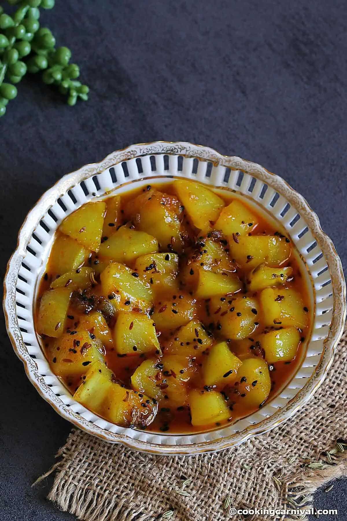 अब आपका कच्चे आम की खट्टी मीठी सब्जी बनकर तैयार है। इसे गरमा गरम पराठे के साथ सर्व करें।