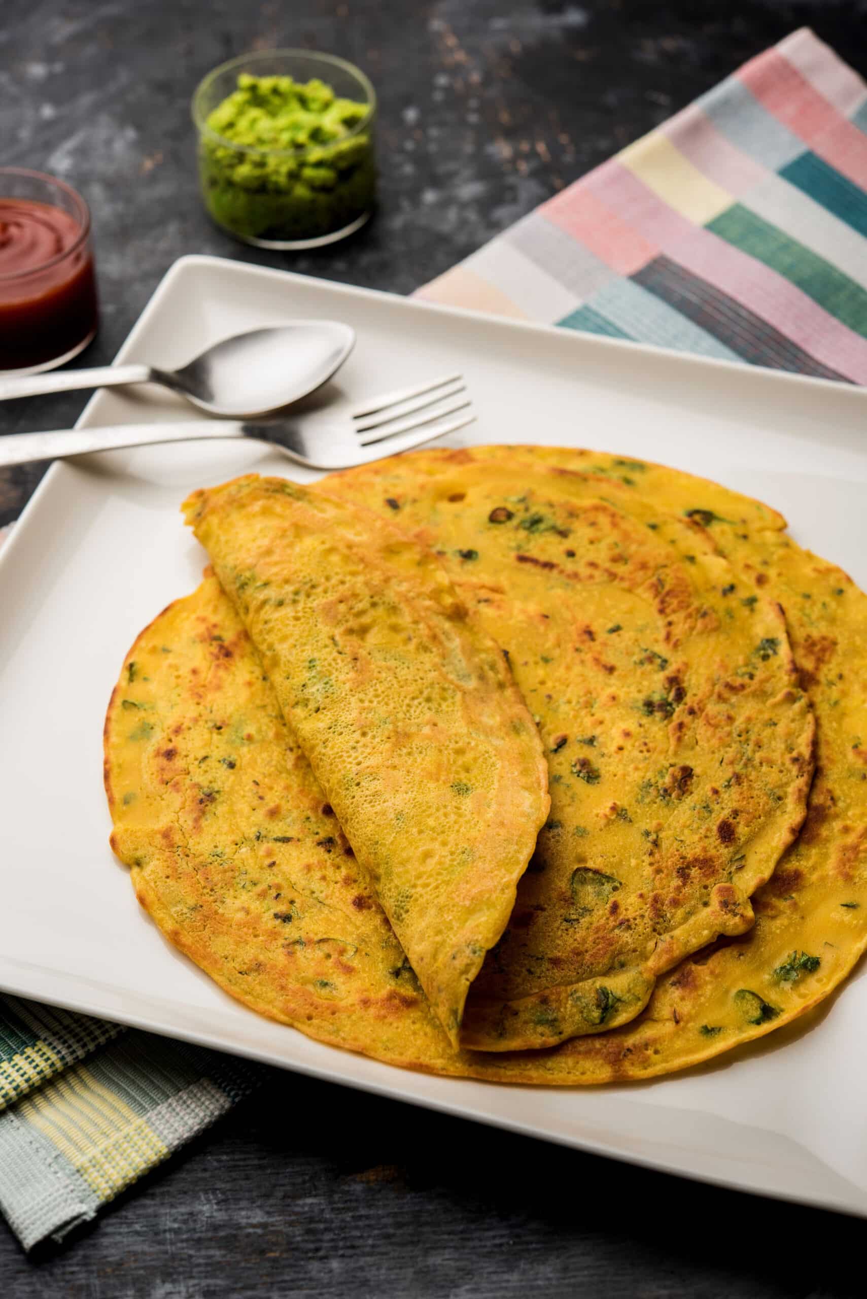 अब चीला के दोनों तरफ से तेल लगाकर क्रिस्पी और गोल्डन ब्राउन होने तक सेंक लें। आपका प्रोटीन से भरपूर मूंग दाल का चीला बनकर तैयार है। इसे चटनी, दही या सॉस के साथ गरमा गरम सर्व करें।