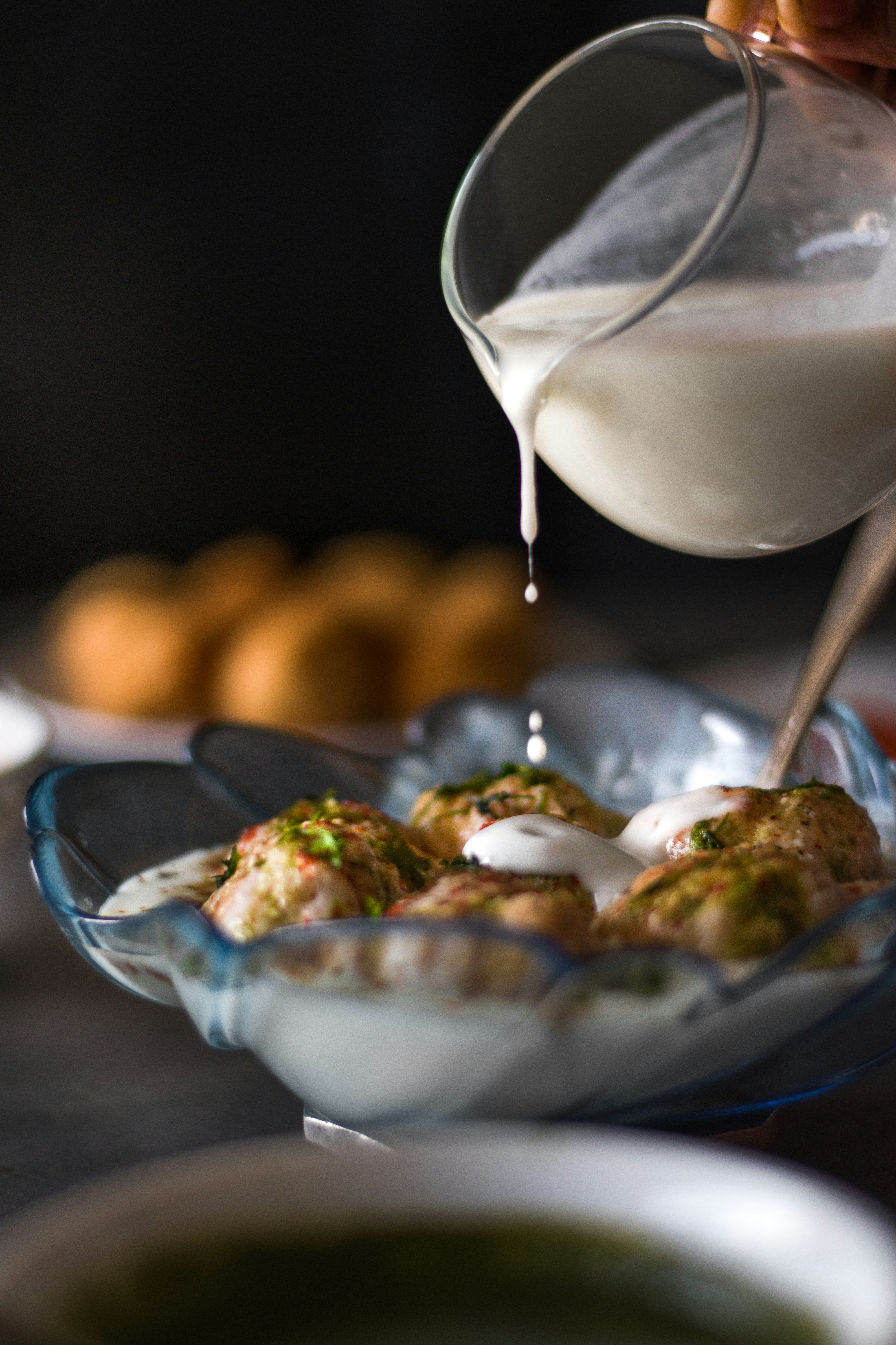 वड़ों को फ्राई करके बची हुई दही में डालिए ऊपर से चाट मसाला और खट्टी-मीठी इमली की चटनी डालकर लुत्फ उठायें