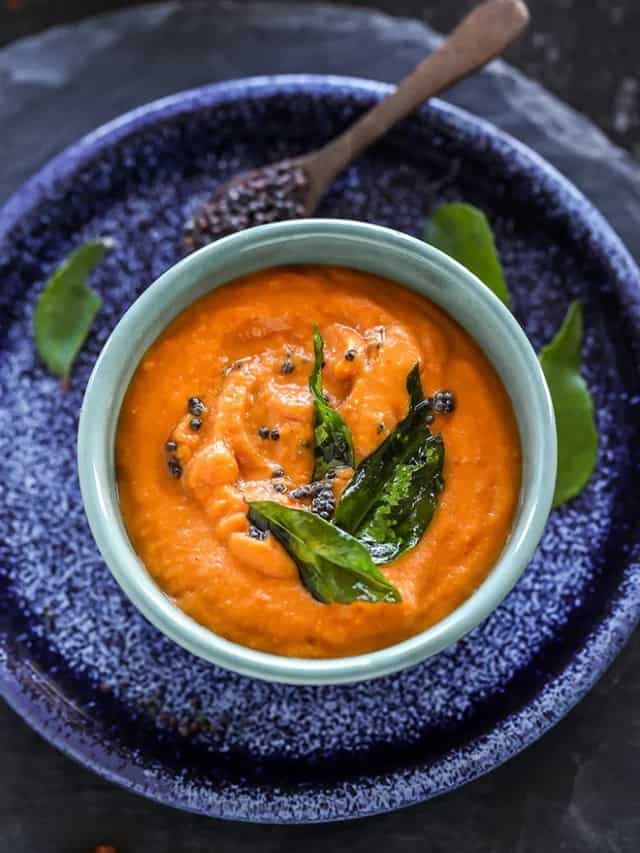 अब आपका टमाटर की चटनी बनकर तैयार है। इसे पराठें, पकौड़े और स्नैक्स के साथ सर्व करें।