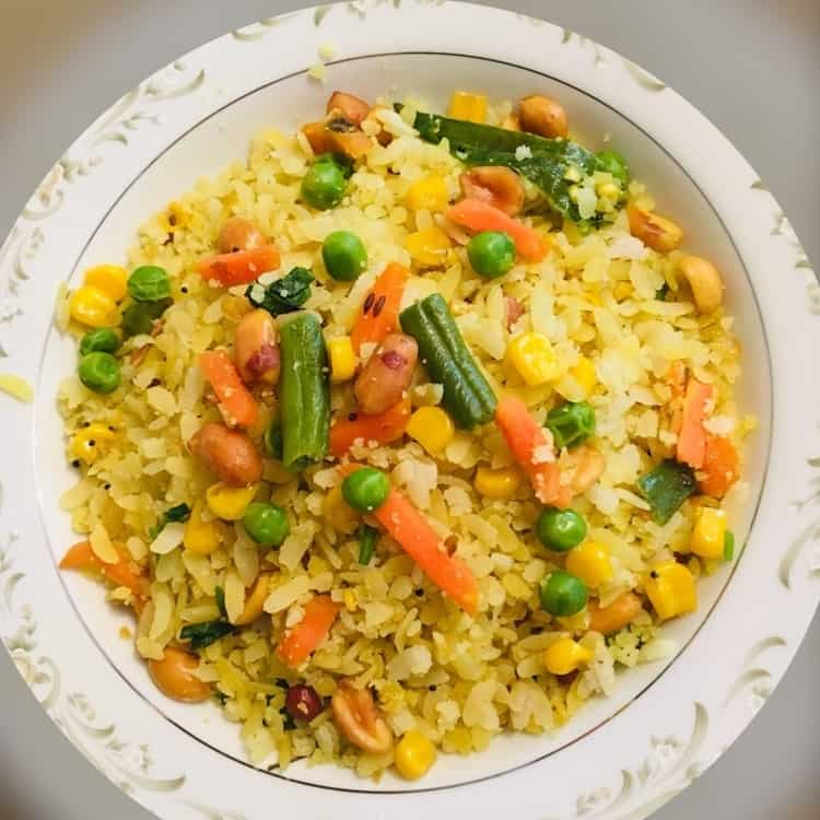 1 कप पोहा 1 प्याज 1 टमाटर 1 हरी मिर्च 1/2 कप मटर 1 उबले आलू 1/2 चम्मच सरसों के बीज 1/4 चम्मच हल्दी पाउडर 1/2 चम्मच चीनी 1/2 चम्मच नमक 1 टेबलस्पून तेल