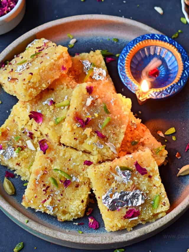 फिर इस मिश्रण को घी लगी हुई थाली में डालकर समान रूप से फैलाएं। इसे थोड़ी देर ठंडा होने दें और फिर मनचाहे आकार में काटकर सर्व करें।