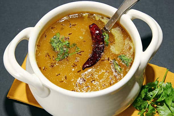1 कप अरहर दाल 1 टी स्पून हल्दी पाउडर स्वादानुसार नमक 1 टमाटर 1 हरी मिर्च 1/2 टी स्पून जीरा 1 टी स्पून अदरक-लहसुन पेस्ट 1/2 टी स्पून लाल मिर्च पाउडर 1 टेबल स्पून घी 1/4 टी स्पून हींग 1/2 टेबल स्पून धनिया