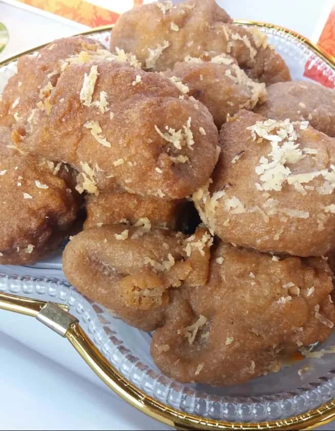 इसके ऊपर कटे हुए नारियल के टुकड़े और तले हुए काजू डालें। पोडू पीठा को पहले से गरम ओवन में बेक करें। पोडो पिठा को प्लेट में निकाल लें और ठंडा होने पर सर्व करें।