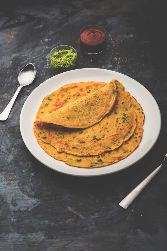 अब इसमें जरूरत अनुसार पानी डालकर चीले का बैटर तैयार कर लें। ध्यान रहे बैटर न ज्यादा गाढ़ा हो और न ही ज्यादा पतला। फिर इस तैयार बैटर को 5 मिनट के लिए एक प्लेट से ढककर रख दें।