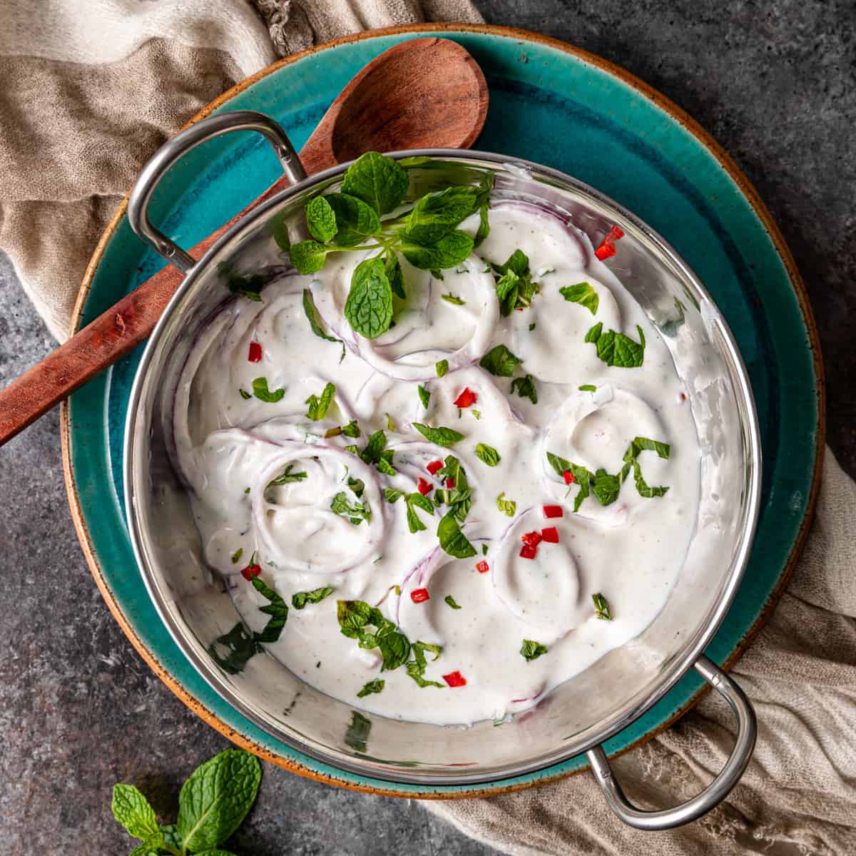 1 कप ताजा दही 1 प्याज (छोटे टुकड़ों में कटी हुई) 2 टेबलस्पून धनिया पत्ती (बारीक कटी हुई) 2 हरी मिर्च (बारीक कटी हुई) 1/4 टीस्पून लाल मिर्च पाउडर 1/2 टीस्पून भूना जीरा पाउडर 1/4 टीस्पून काला नमक स्वादानुसार नमक