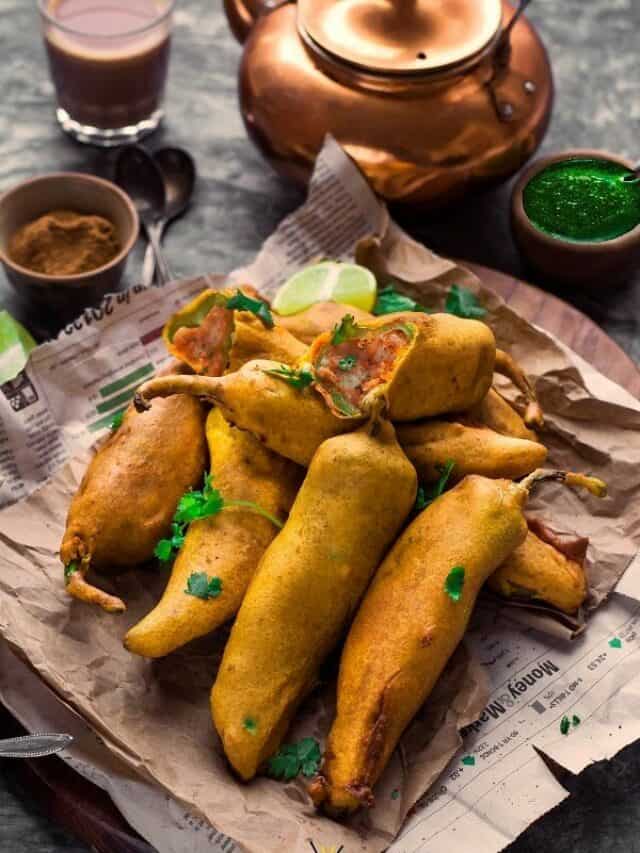 हरी मिर्चों को बेसन के मिश्रण में डालकर गर्म तेल में छोड़ दें। मध्यम आंच से हल्की कर दें और उन्हें हल्का भूरा होने तक सिकने दें। और अब इसे सर्व करें।
