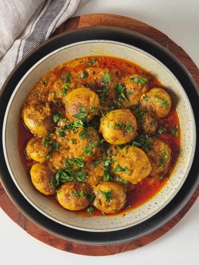 अब दही और भूने हुए आलू डालें, पानी डालें और धीमी आंच पर 10 मिनट तक पकाएं ताकि आलू ग्रेवी को अच्छे से सोख लें। गरम मसाला और हरा धनिया डालें। इसे रोटी या चावल के साथ सर्व करें।