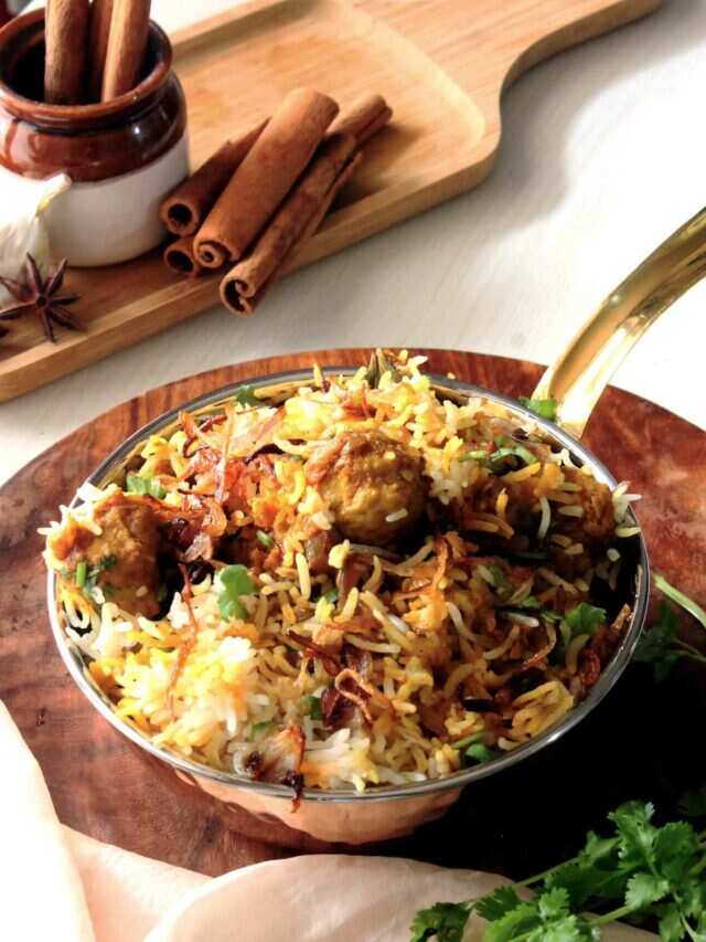 500 ग्राम मटन 2 कप बासमती चावल 1 प्याज 2 टमाटर 1/2 कप दही 1 टीस्पून अदरक-लहसुन पेस्ट 2 हरी इलायची 2 लौंग 1/2 टीस्पून जीरा 1/2 टीस्पून हल्दी पाउडर 1 टीस्पून लाल मिर्च पाउडर 1 टीस्पून गरम मसाला पाउडर 2 टेबलस्पून घी 1/4 कप हरा धनिया स्वादानुसार नमक