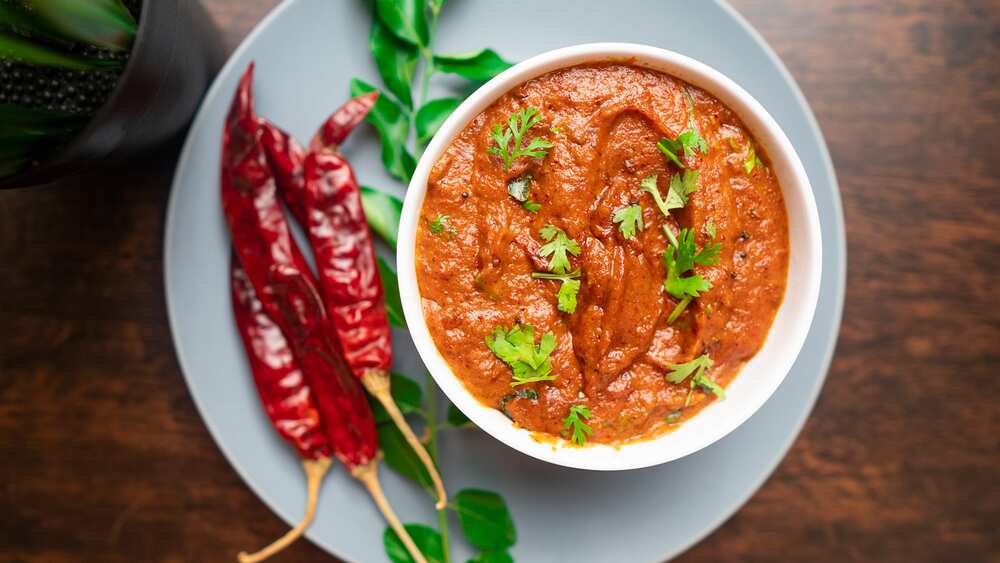 4 प्याज 1 टीस्पून इमली 1/4 टीस्पून राई 1/4 टीस्पून उड़द दाल 2 सूखा लाल मिर्च स्वादानुसार नमक 1 टीस्पून तेल