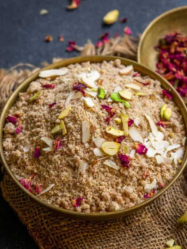 Dry fruit panjiri is a traditional North Indian sweet, often made in the winter season for warmth and nourishment. Replace wheat flour with semolina and try this panjiri recipe for a healthy treat.