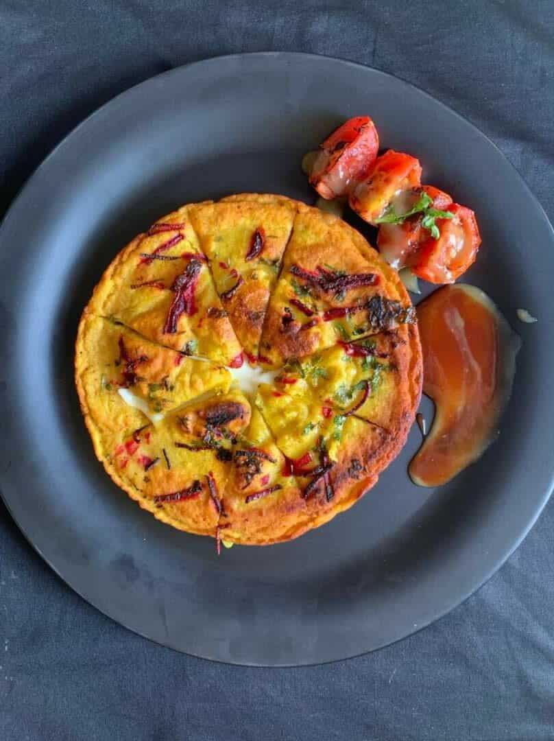 Moonglet is a fluffy, vegan omelette made from moong dal batter and vegetables. It’s rich in protein, light to eat, and a healthy choice for breakfast or snacks.