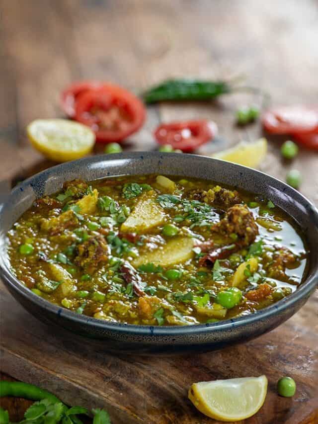 Nimona is a comforting traditional North Indian curry made from coarsely crushed green peas, cooked with mild spices and aromatics, creating a flavorful, rustic dish perfect with hot rotis or steamed rice.
