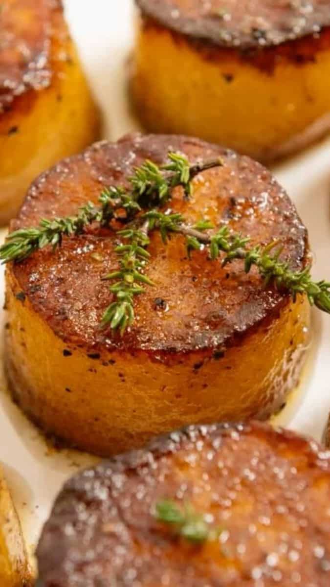Fondant potatoes are a classic and elegant way to serve up potatoes. Crispy on the outside, and deliciously creamy on the inside. Potatoes are peeled, cut into cylinders, browned in butter, and then oven-roasted in butter and stock. They are then baked in the oven with a generous sprinkling of parmesan cheese until crispy and golden.