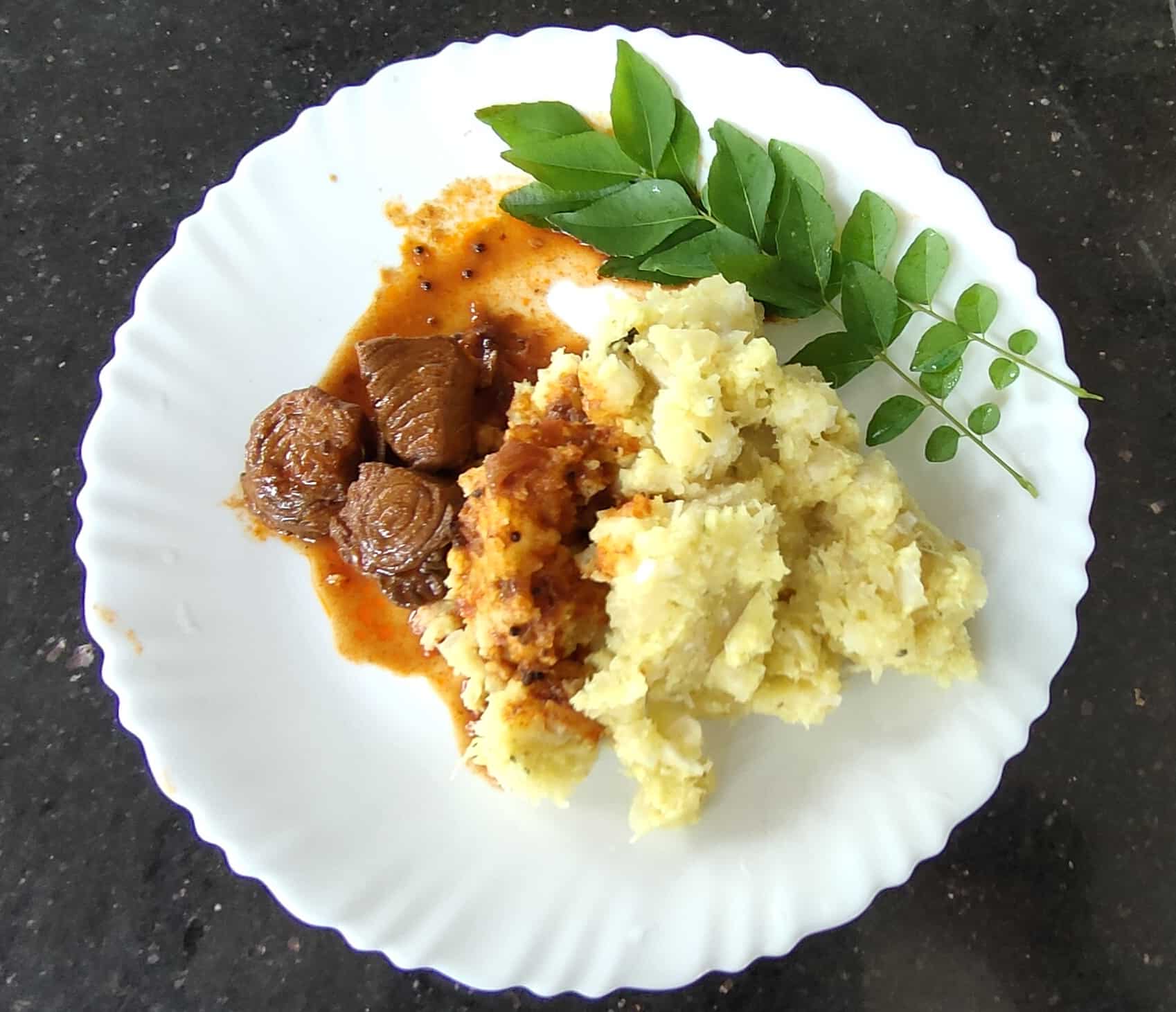 Kappa meen curry is a beloved dish from Kerala made with boiled tapioca and spicy fish curry. The contrast between the bland buttery tapioca and fiery fish curry creates a perfect combination which cannot be missed.
