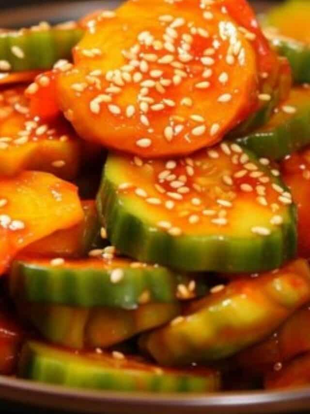 Kimchi salad is a tangy and spicy Korean dish made from fermented cabbage and vegetables. It’s packed with flavour and rich in probiotics, making it a healthy side.