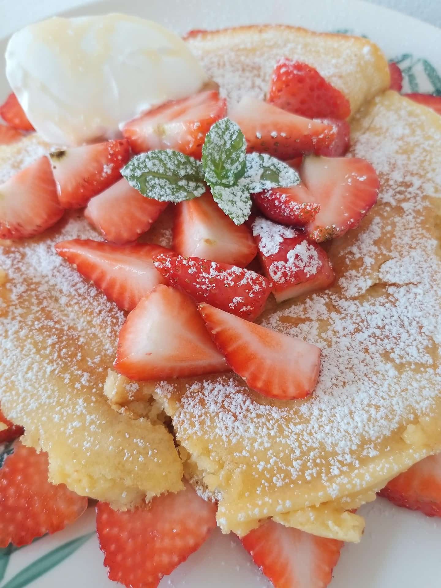 Serve warm with maple syrup or honey, fruits and whipped cream.