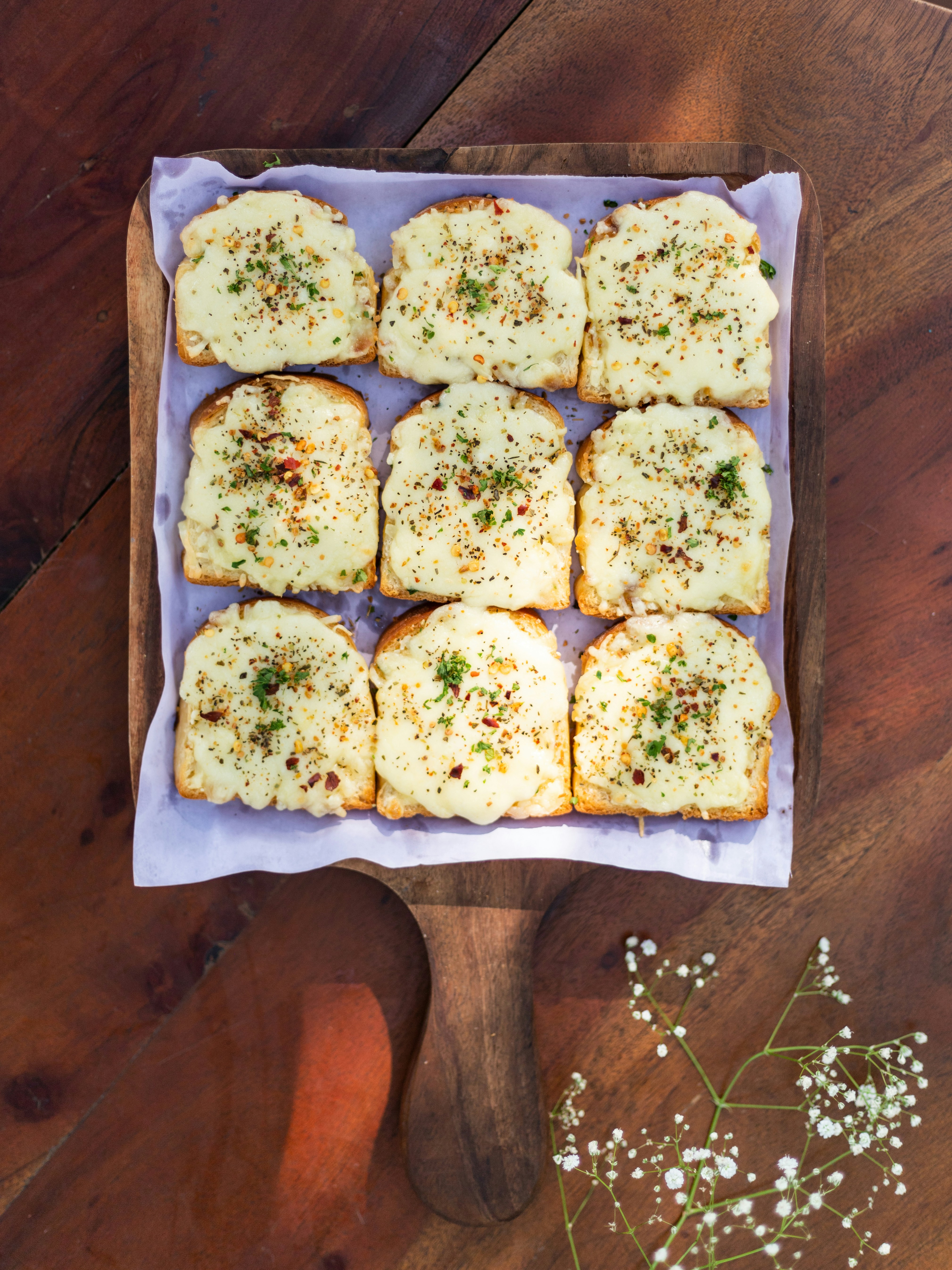 Slice it and enjoy the cheesy garlic bread.