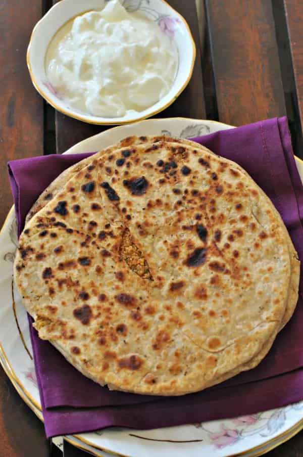 Heat a tawa, cook the paratha on both sides, applying ghee or oil until golden brown.